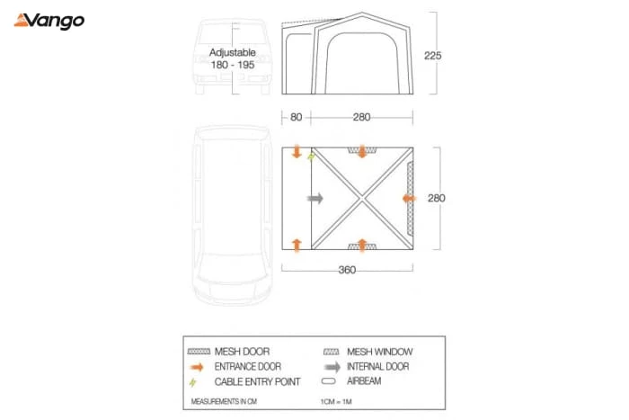 - Inflatable AirBeam® Structure – With 10 years’ experience in AirBeam® technology, we are the leaders in pole free pitching. AirBeam® technology ensures your awning is erect within a matter of minutes (supplied with double action pump)