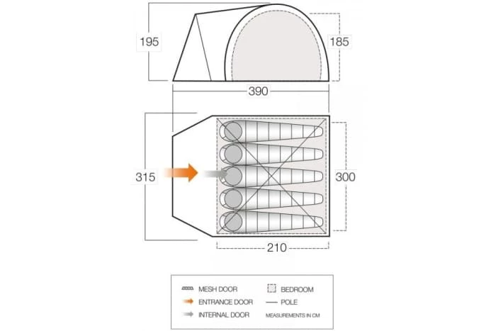- Linked-In Groundsheet – Easy to clean groundsheet that can be attached or detached from the living area. Simply roll under the bedroom area when not required