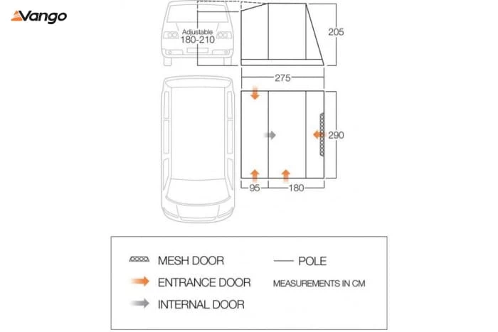 - King Pole Door – Door can be used as a canopy by adding additional king poles through the door eyelets, providing shelter from sun or rain
