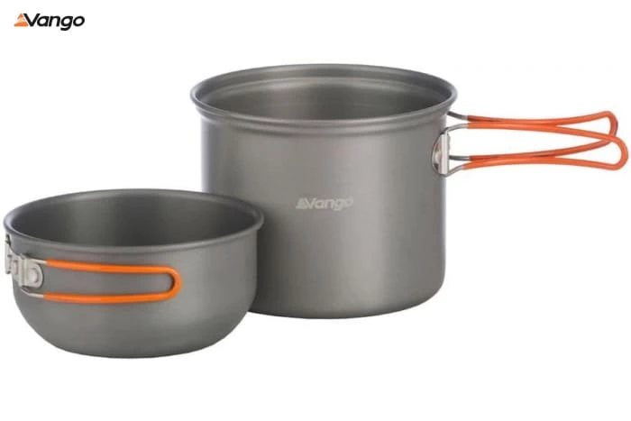 The Vango Hard Anodised Cook Kit comprises of 2 pots with lid/mug combination. It is ideal for travellers wanting to stop off for a quick meal without worrying about having to scrape their pots and pans. Especially solo travellers. It is light weight, non-stick, strong and durable and will last for many years, as well as being extremely portable due to its handy carry bag.