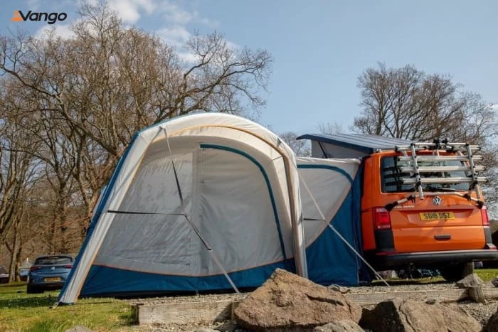 The Magra awning is designed for campervans and conversions. This inflatable drive away awning has a front and back entrance, so is ideal for left or right main van doors, allowing you to create the perfect set up on any campsite. With an eyebrow canopy at the front door, you can stay dry even if it’s raining whilst a sweeping canopy at the rear is ideal for muddy boots or creating a social space at the back of your campervan. The Sentinel Sport Fabric has a small and lightweight pack size whilst still being durable. With a great size to weight ratio, the Magra air awning ensures you can spend the day walking, biking, surfing or just relaxing on the campsite and still have room in your campervan for every adventure.