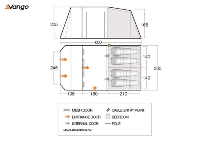 - Vango AirZone – High and low level ventilation panels combine to create a comfortable flow of air through the tent. Air circulation is essential for reducing condensation
