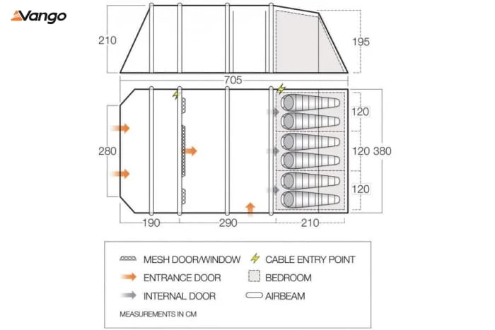 - Vango AirZone – High and low level ventilation panels combine to create a comfortable flow of air through the tent. Air circulation is essential for reducing condensation