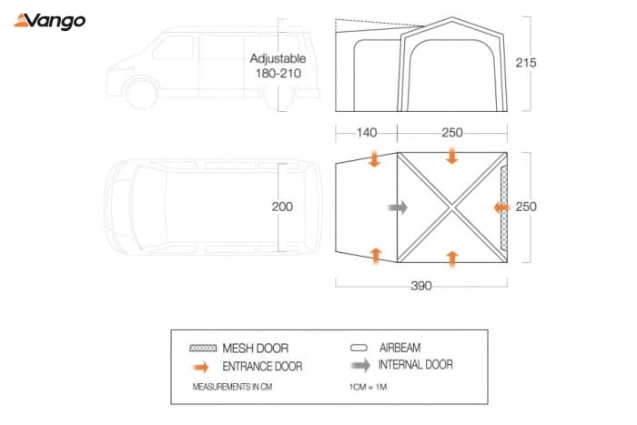 - Inflatable AirBeam® Structure – With 10 years’ experience in AirBeam® technology, we are the leaders in pole free pitching. AirBeam® technology ensures your awning is erect within a matter of minutes (supplied with double action pump)