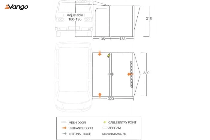 The Tolga awning is designed for campervans and conversions. Using Vango’s AirBeam® Technology, it is simple and fast to inflate and utilises Vango’s Sentinel Sport fabric with ColourLokâ„¢ technology to reduce the effects of UV on your awning. A handy covered entrance provides additional living space for relaxing in the shade or taking cover from the rain. The SkyTrack II® System inside is perfect for hanging lights or the included SkyLiner. With a great weight to space ratio, this drive away awning has all the room you need to enjoy camping trips whilst still being light-weight and compact to combat the limited storage space often found in campervans. Enjoy every adventure with the Tolga campervan awning, for wherever you go.