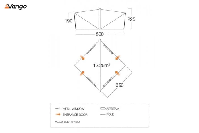 - Inflatable AirBeam® Structure – With 10 years’ experience in AirBeam® technology, we are the leaders in pole free pitching. AirBeam® technology ensures your awning is erect within a matter of minutes (supplied with double action pump)